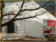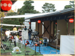 午後3時すぎごろから、二条城中にあるこの道を通って出演者、レポーター、テレビ局の方々が続々と入城。筑紫哲也さんや通訳の戸田さんなど素敵な有名人が!の戸田さんにご挨拶をした後、写真を撮らせていただきました♪とても素敵な方でますますファンになりました!!