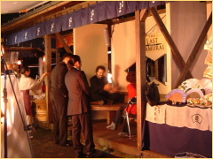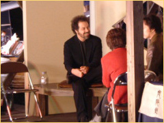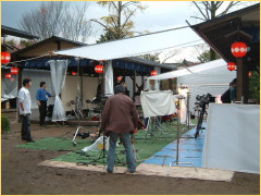 そろそろ日も暮れてきて夕方5時頃になるといろいろなセット場所でライトアップされはじめだんだんと緊張感が出始めました。しばらくするとエドワーズ・ズウィック監督が到着!記者会見場所をご覧になられています。(舞扇堂店舗内より撮影)