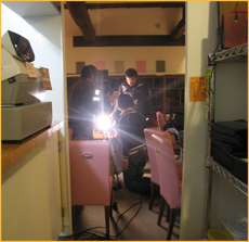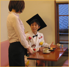 今回は、G1の実況もされたことがある岡安アナウンサーに産寧坂桜庭店へお越しいただきました。京都のいろいろな情報を紹介していただけるコーナーの撮影です。スイーツをたくさん付けたちょっと可愛い白衣を着て登場です。撮影時、実際に食べていただいたスイーツの感想を述べられる時、美味しい~と言っていただけて光栄です。ありがとうございます!気さくな優しい撮影スタッフの皆さんと和やかなムードで撮影が進みます。撮影後は、2階カフェにてスタッフも交えて記念撮影です。とっても楽しい撮影でした。撮影隊の皆さま、本当に楽しい時間をありがとうございました!