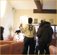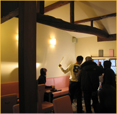 まずはじめに、弊社社長 水上裕之が投扇興の歴史や扇子の持ち方・狙い方などを皆様にレクチャー。皆様熱心に聞き入っておられました。投扇興は初めての会員様がほとんどの中、いよいよ練習スタート!!実際に皆様に投げて頂きました。いきなり練習の段階で大技が数々出るなど、皆様うまい!!