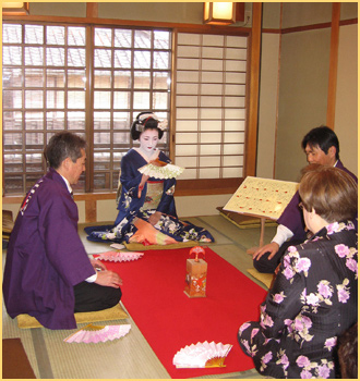凛とした空気が漂う冬の京都でJALカードオリジナルプラン『舞妓さんと楽しむ京の遊び・投扇興』が行われました。30名の定員に400名のご応募を頂いた今回のイベントには、北は宮城県から西は岡山県までご夫婦やご友人同士などさまざまな皆様にご参加頂きました。